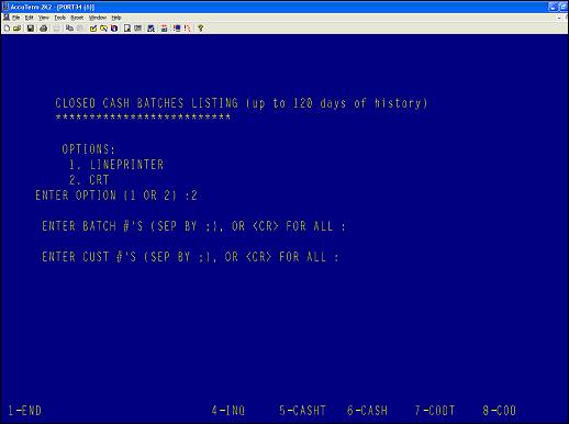 The next prompt gives the user the option for summary or detailed data. Summary data will produce output limited to the batch number, the batch total and the write off amounts: